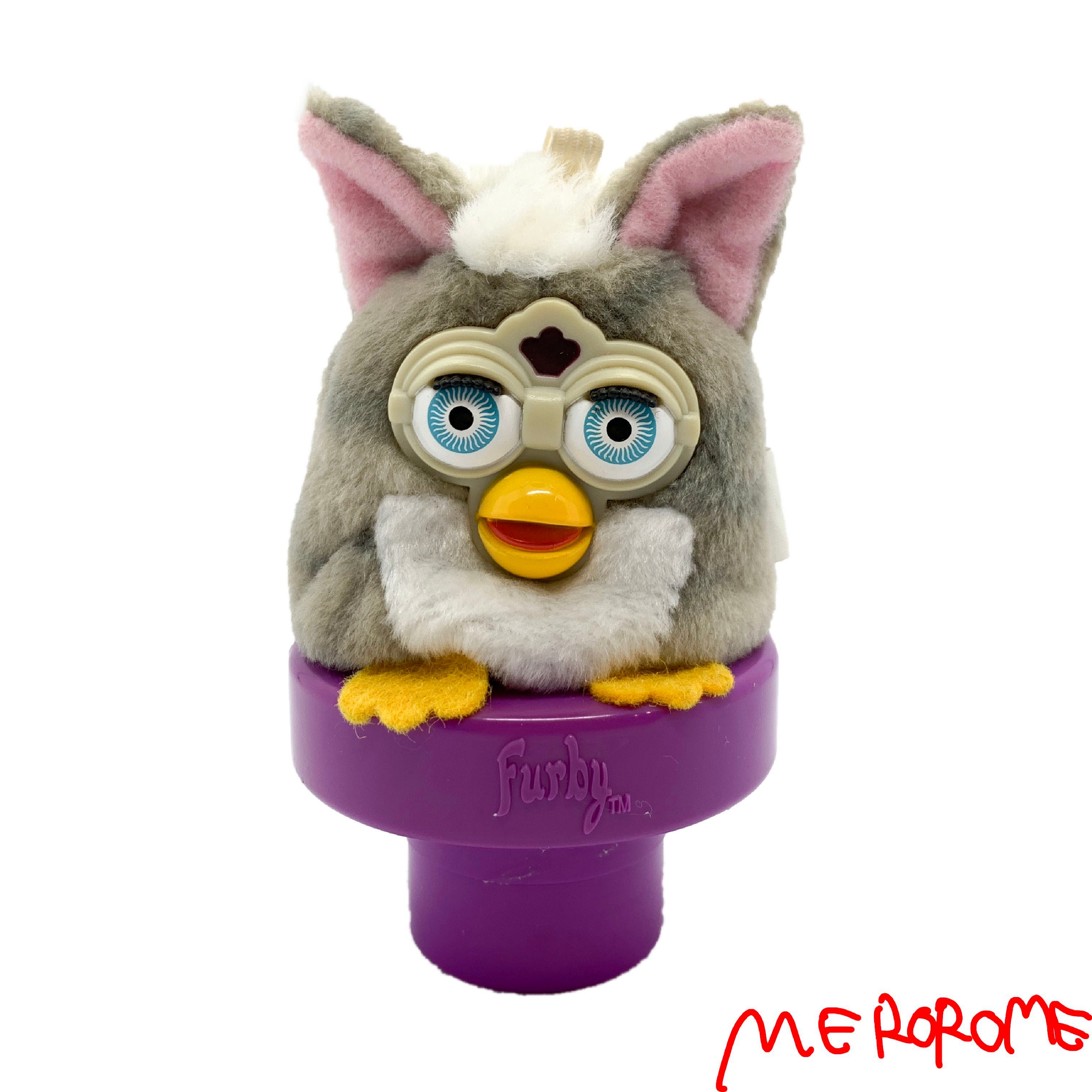 もともとはお菓子のおまけとしてついていました。紫色の台座はお菓子のふたです。
